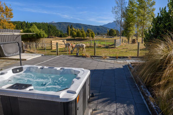Kepler Mountain View Cottage is a fully self-contained private cottage located on Ray & Jessie’s alpaca farm. The cottage has a kitchen and a laundry as well and an outdoor area with gas BBQ and the cottage’s spa pool is just a few steps outside the cottage front door. Views from the cottage and outdoors are looking into Fiordland’s magnificent mountain ranges.