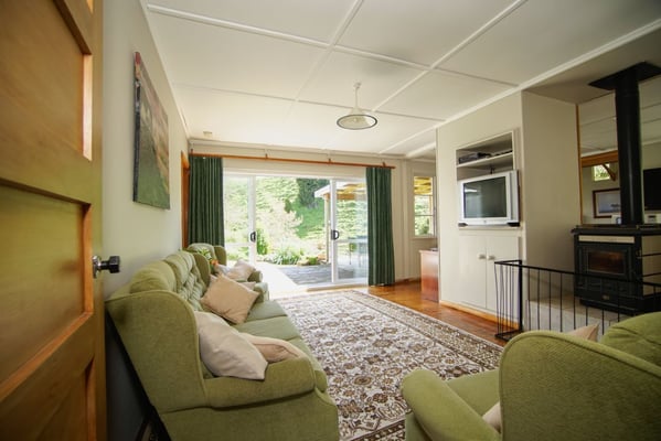 The Cottage is a private, warm sunny fenced country cottage within a garden setting with a spacious covered deck that overlooks sheep and cattle grazing on the nearby hills.