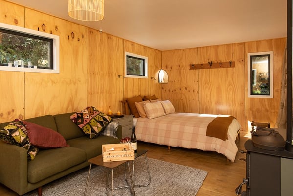 Enjoy the casual luxury of the new river cabin that is built from recycled and sustainable materials, completely 100% off-grid, eco friendly, insulated, warm and cosy and totally secluded in the loveliest spot on the farm.